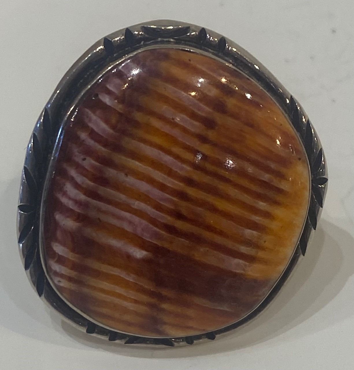 Purple and Orange Spiny Oyster Shell Massive Ring stamped TL. Size 12. What an awesome ring it is. 23 grams