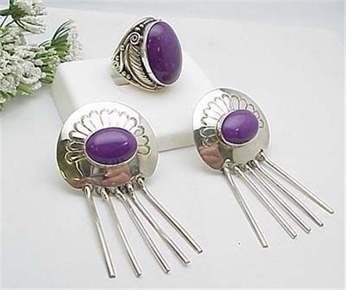 Purple onyx earring and ring set in sterling. Ring is size 9 1/2 41.5gr