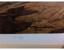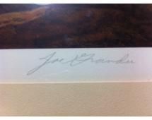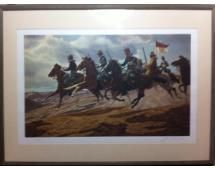 "Pursuit and Attack" by artist Joe Ruiz Grandee (1929-1979), lithograph signed in pencil in the year 1974. Framed 24" x 32" Image size 22" x 30". Artist, Joe Ruiz Grandee as born a third generation Texan born in Dallas in 1929. He studied at the Aunspaugh Art School in Dallas during 1947. From 1965 to 1991, he was active as a sculptor, illustrator, and painter of portraits, military scenes, and the history of the West. He has been cited for historically accurate depictions of the Dragoons and Cavalrymen of the U. S. Army. In 1974 Joe Ruiz Grandee was honored as the first official state artist for the State of Texas an appointment by the Texas Legislature.in which he served for one year. Joe Ruiz Grandee was also the first artist to show in Washington D. C., and considered a leading expert on the American West. His work has been exhibited by the White House, The Harmsen Collection of Western Art and the National Cowboy Hall of Fame. His original works are rare and valuable.