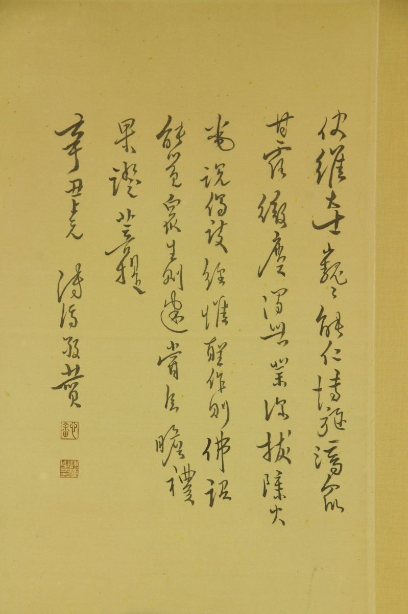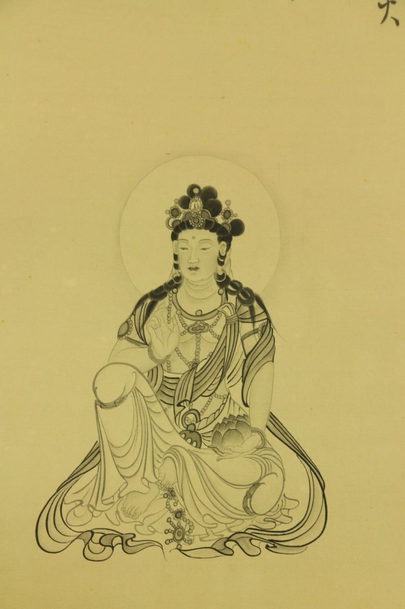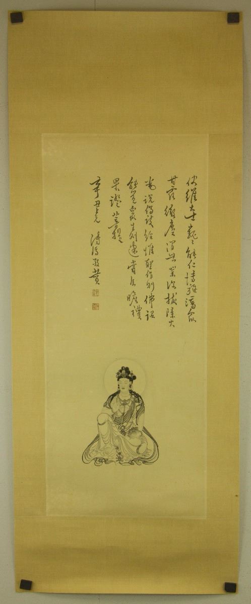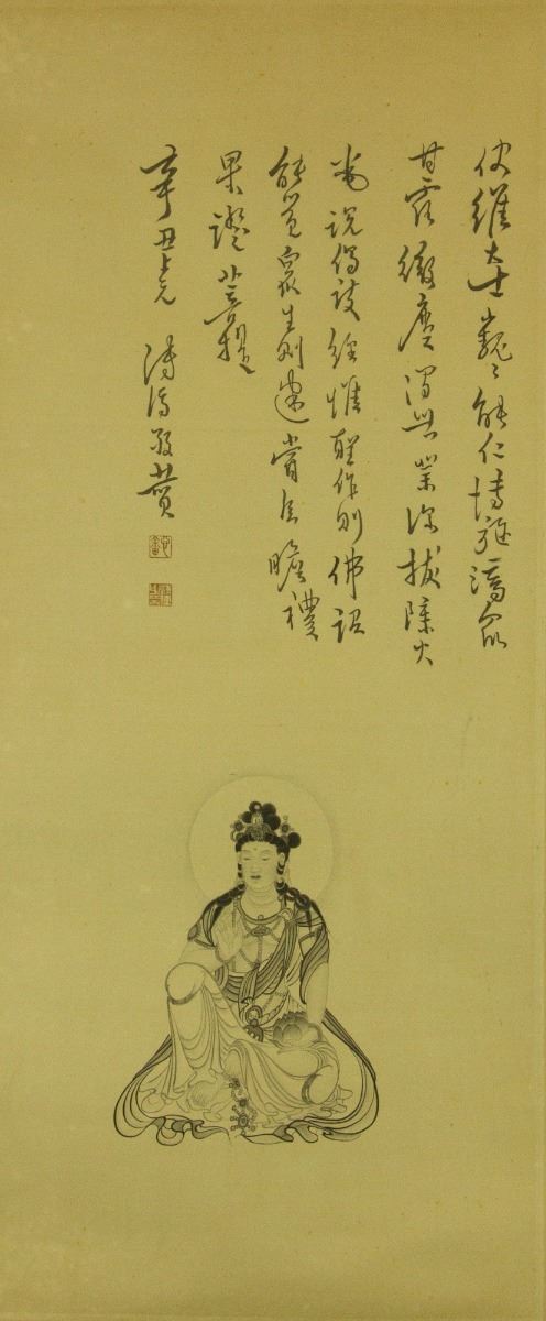 Portrait of Guanyin with calligraphy inscription; Chinese ink and watercolour on paper roll; singed Puru (1896-1964); inscribed with two artist seals; 83 cm × 36 cm