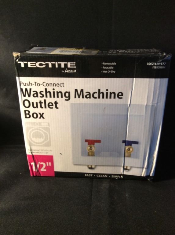 Push to connect washing machine outlet box