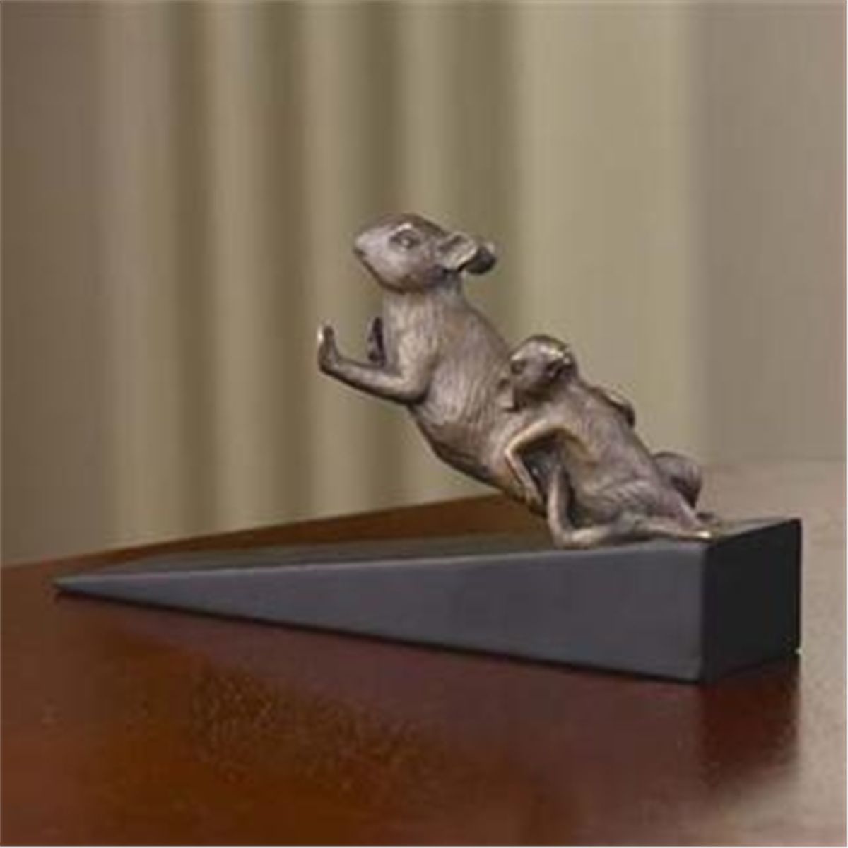 Pushing Mice Doorstop - 3"H X 6.5"W X 1.5"D - Brass & Wood
