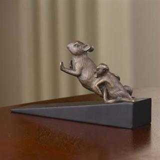 Pushing Mice Doorstop - 3"x6.5"x1.5" - Brass & Wood