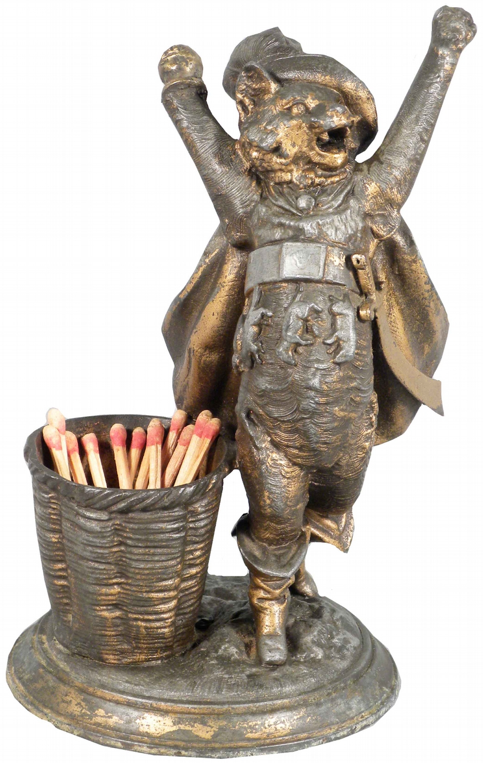 Puss-In-Boots Figural Match Holder. Very good condition. 7 inches tall.