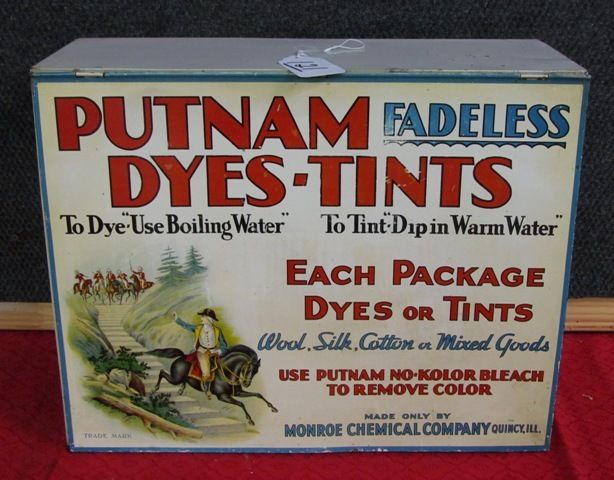 Original Putnam Fadeless Dyes Store Display w/labeled insert - original condition 15T x 19W x 6 D