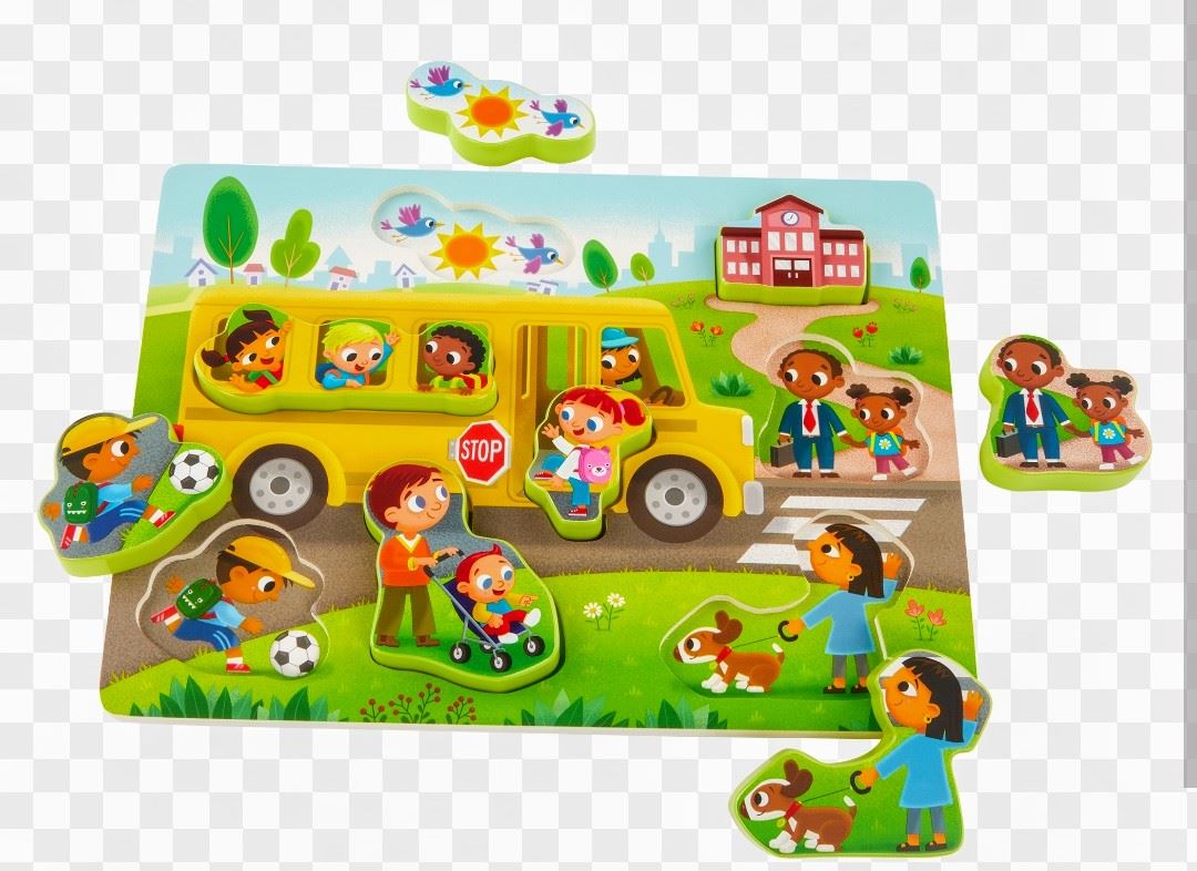 Interactive kids' play wood learnig puzzle with school bus and characters, encourages imaginative play, new.