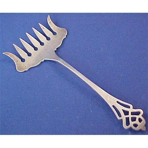 This is the 5" long by 2.25" wide sterling sardine fork in the elegant pierced handled Pynchon pattern by Lunt. This fork is in excellent unmonogrammed condition and will cost $4 to ship to US addresses.