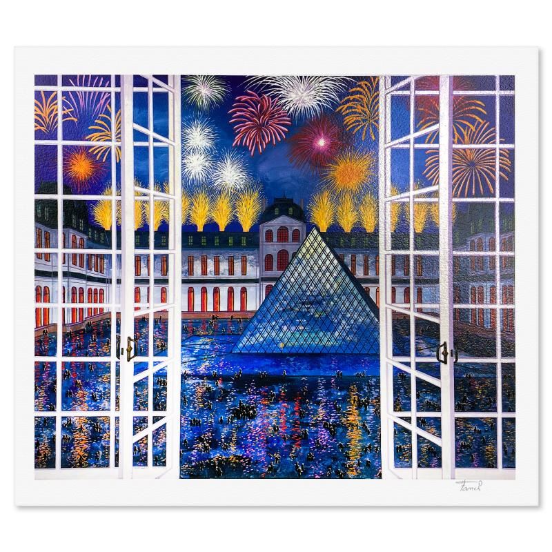"Pyramide Du Louvre" is a limited edition serigraph on paper by Fanch, AP numbered and hand signed by the artist. Includes Letter of Authenticity. Measures approx. 14.5" x 17" (border), 12" x 15" (image). This proof came from Fanch Ledan's personal collection. It may have some slight imperfections in the image and border, but it's overall condition was inspected and approved by him.
