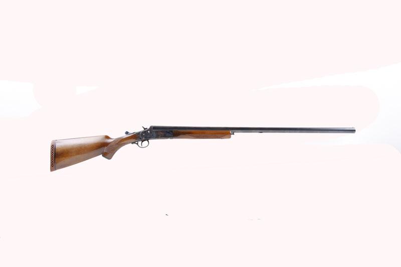 Pyrenees Arms Shotgun 10 ga SN:8987 Very nice 10 gauge single shot "Goose Gun" with external hammer, made in Spain. Blued barrel, case color receiver with nice engraved hunting scenes, wood pistol grip checkered stock and fore arm with rubber butt pad,Very nice 10 gauge single shot "Goose Gun" with external hammer, made in Spain. Blued barrel, case color receiver with nice engraved hunting scenes, wood pistol grip checkered stock and fore arm with rubber butt pad, 32" barrel, excellent boreand action. Condition: Very good showing very little use. Trigger and guard show some developing surface rust.