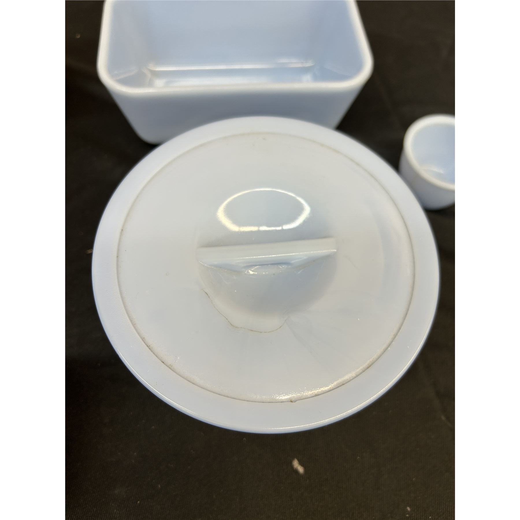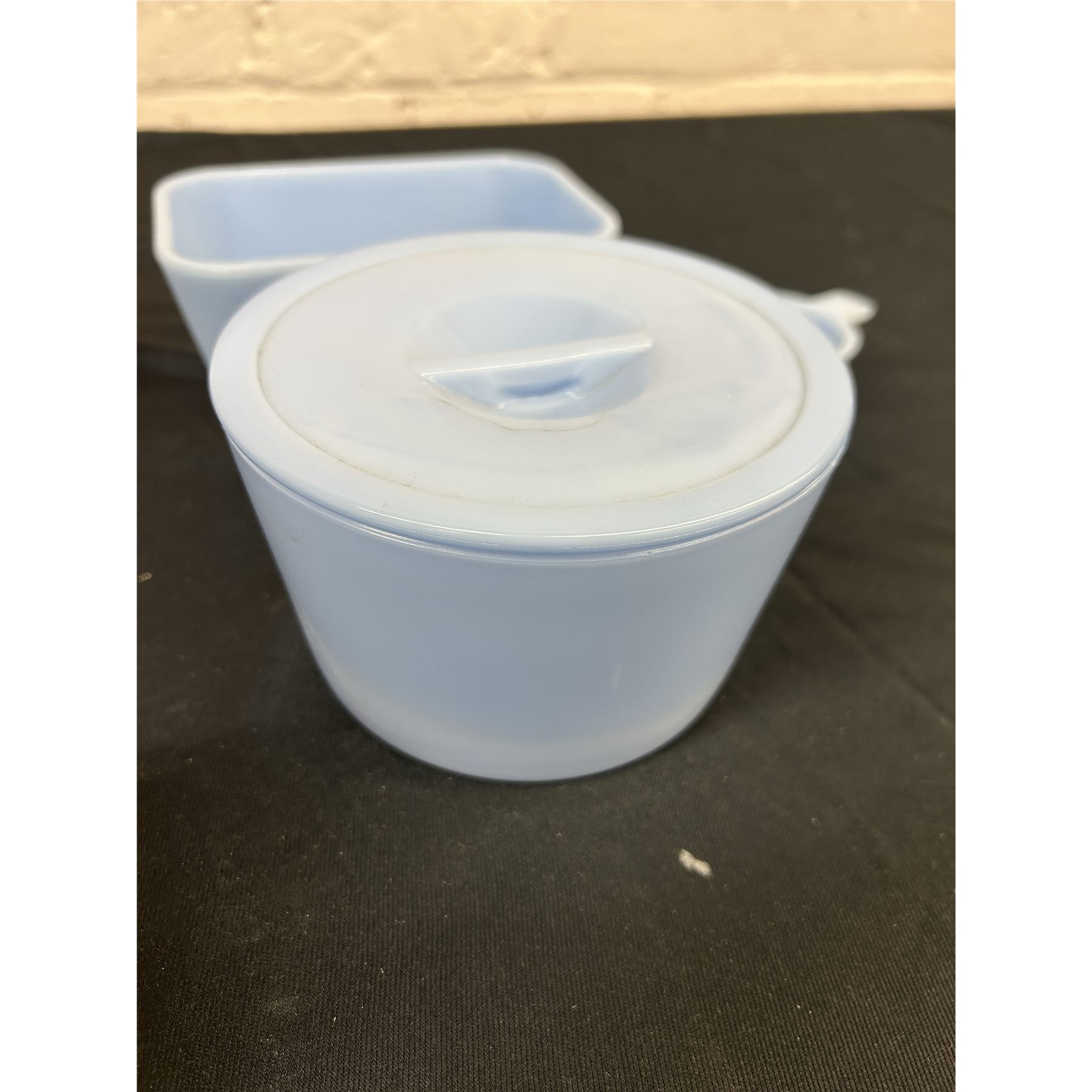 Pyrex Blue Delphite Loaf Dish, Small Measuring Cup and Covered Dish, 4 Pyrex Fridge Storage pcs