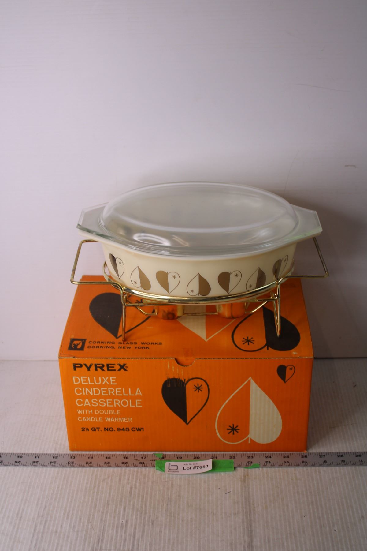 Pyrex Cinderella Casserole Dish with Stand in Box (NOS, NIB)
