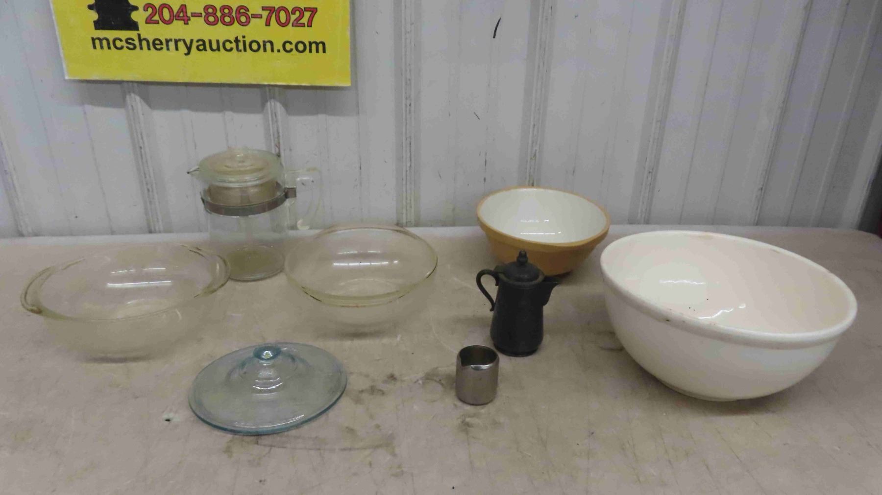 Pyrex Coffee Perc , 2 Bowls , Silver Plated Creamer & More