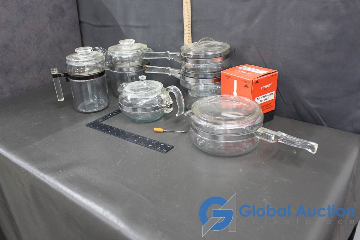 Pyrex Coffee & Tea Pots, Double Boiler & Pot