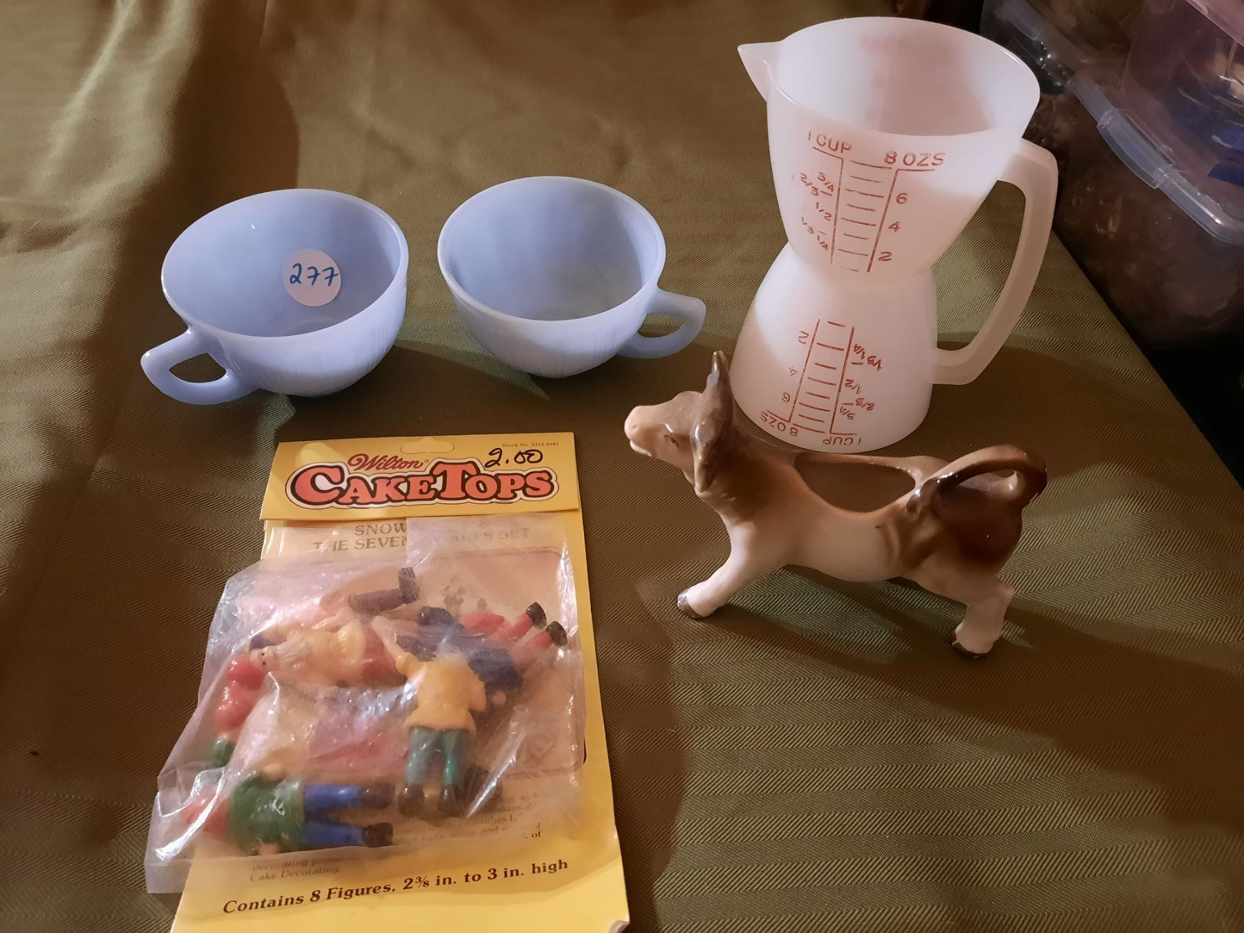 Pyrex Cups, Cow Creamer, Snow White Cake Toppers