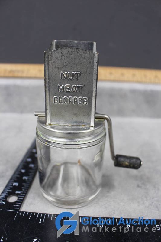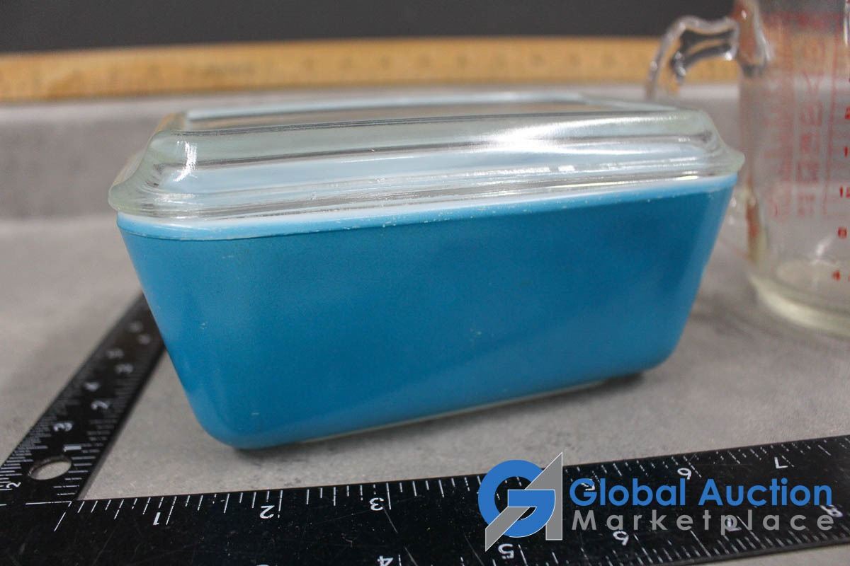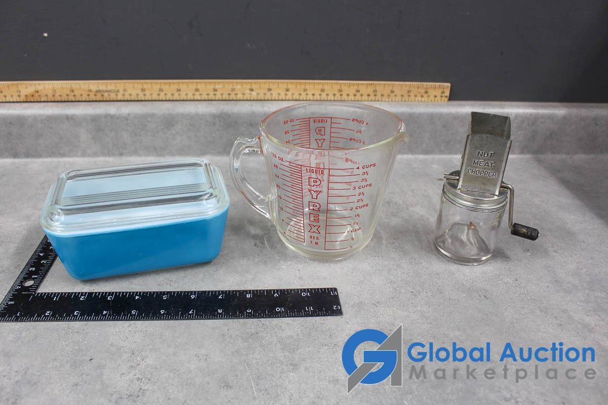 Pyrex Dish w/Lid, Measuring Cup & Vintage Nut & Meat Chopper