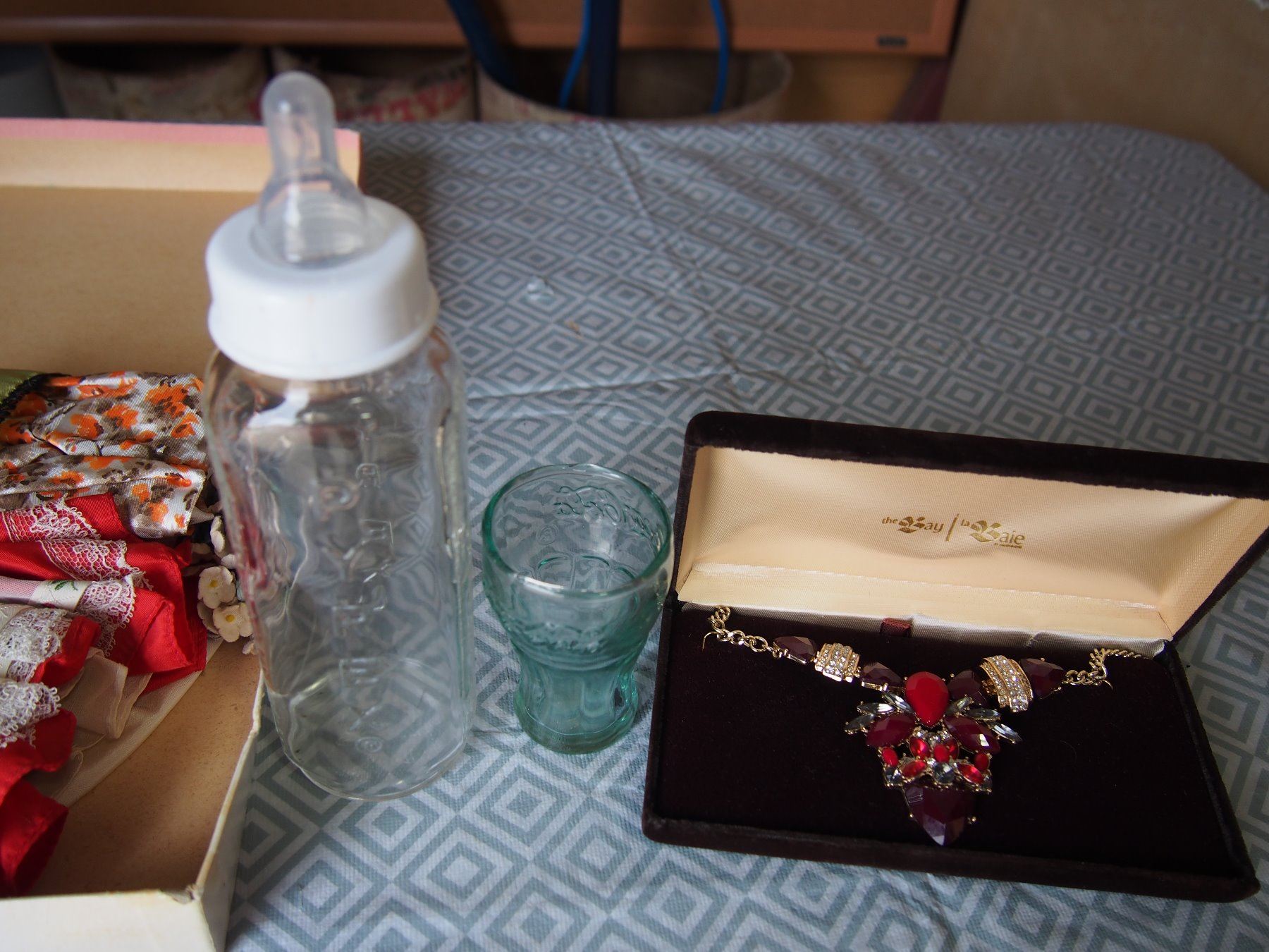 Pyrex Embossed Baby Bottle, Vintage Small Dolls, Jewellery, and more