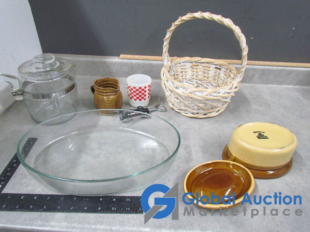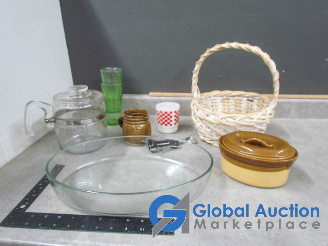 Pyrex, Fire King, Wicker Basket, Stoneware, etc