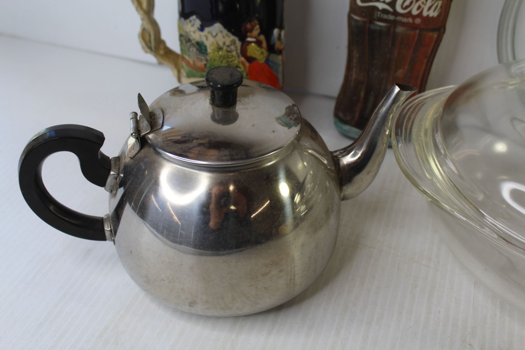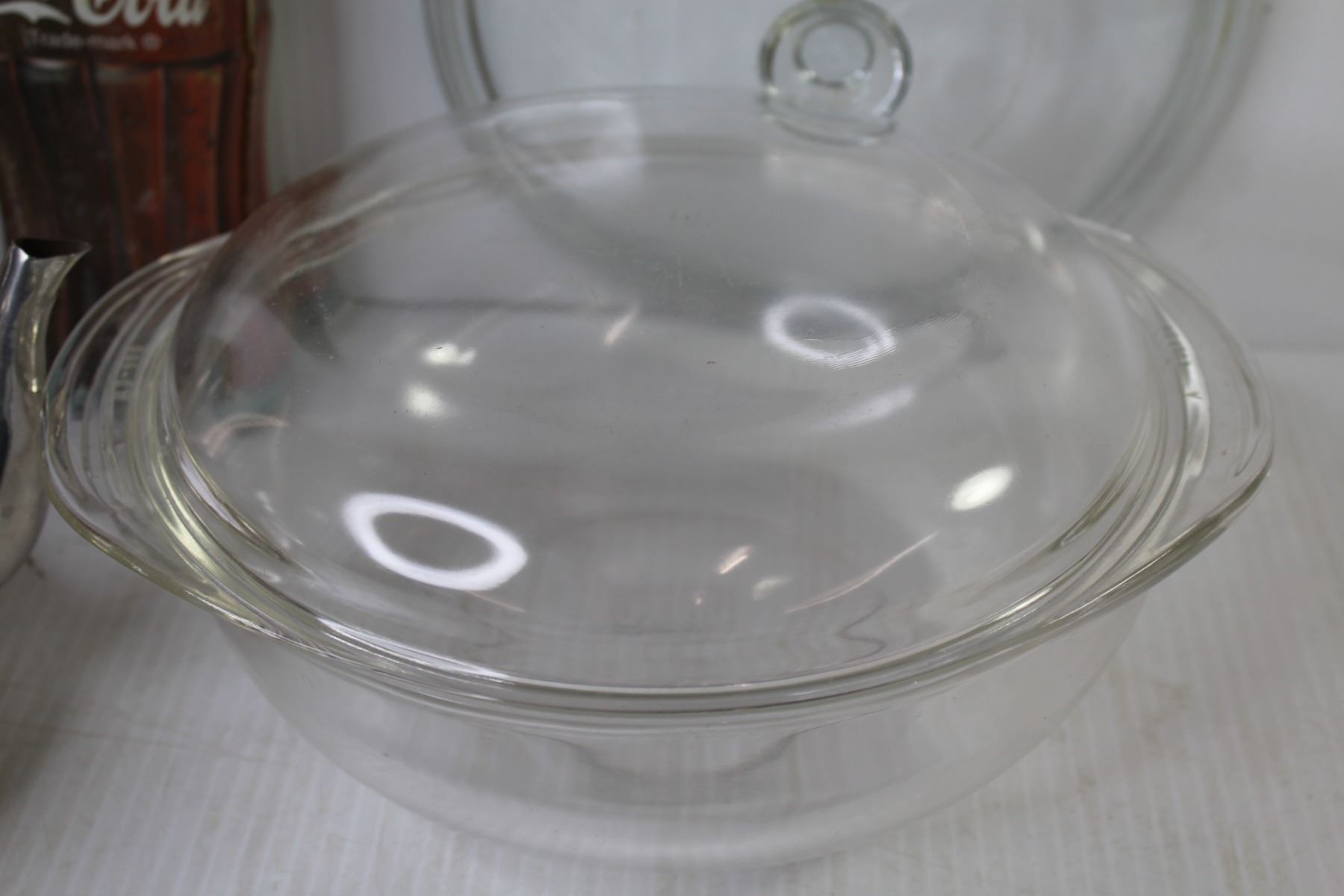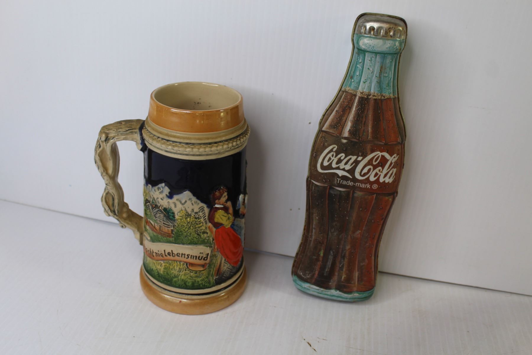 Pyrex Glass Bowl - Conch Shell - Coca-Cola Tin - Metal Teapot - German Beer Stein - Tin - Glass Lid