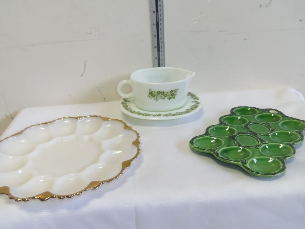 Pyrex Gravy Boat and 2 Deviled Eggs Trays