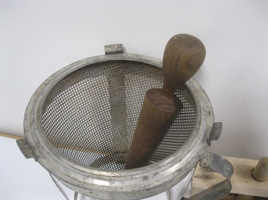 Metal Cone Shaped Sieve and Wood Pestle, Wooden Butter Mold