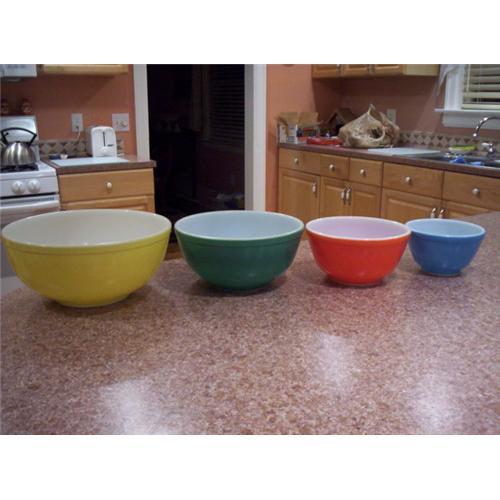 <tr><td>Title:Pyrex Primary Color Set Of Four Bowls</td></tr>