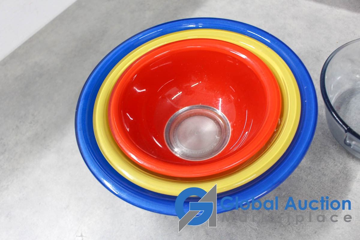 Pyrex Prime Color Bow Set, Pyrex Dish w/Lid and Bowl, Cups
