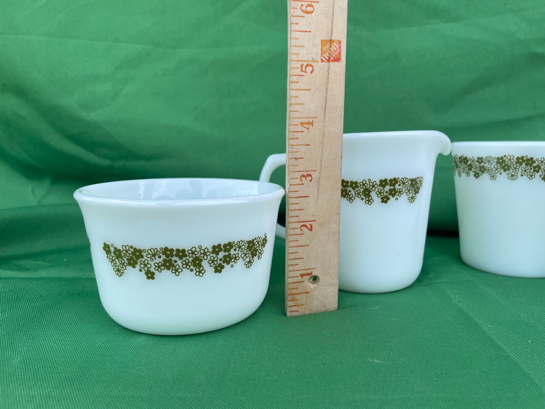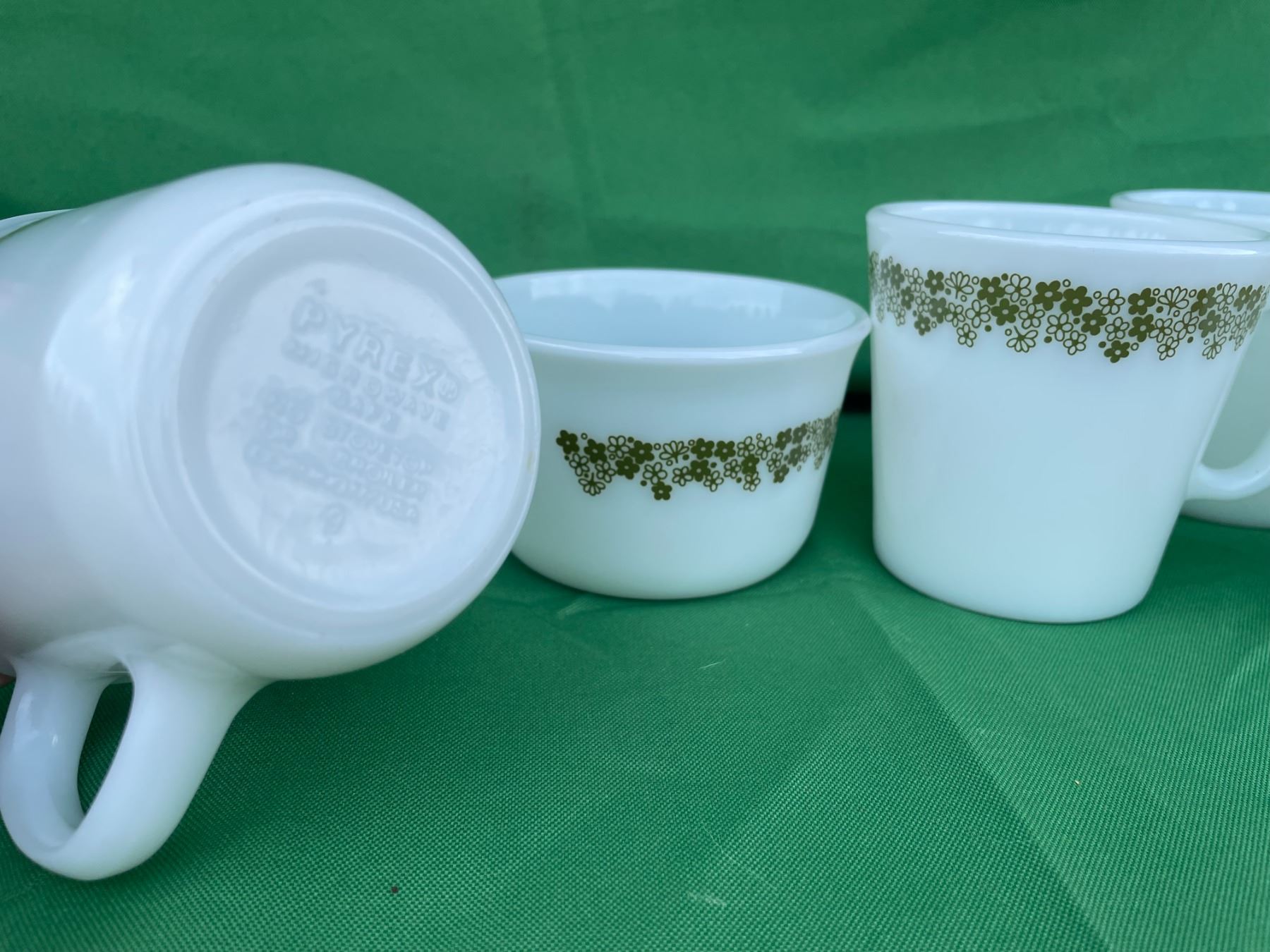 Pyrex Spring Blossom Three Coffee Cups, creamer and sugar bowl