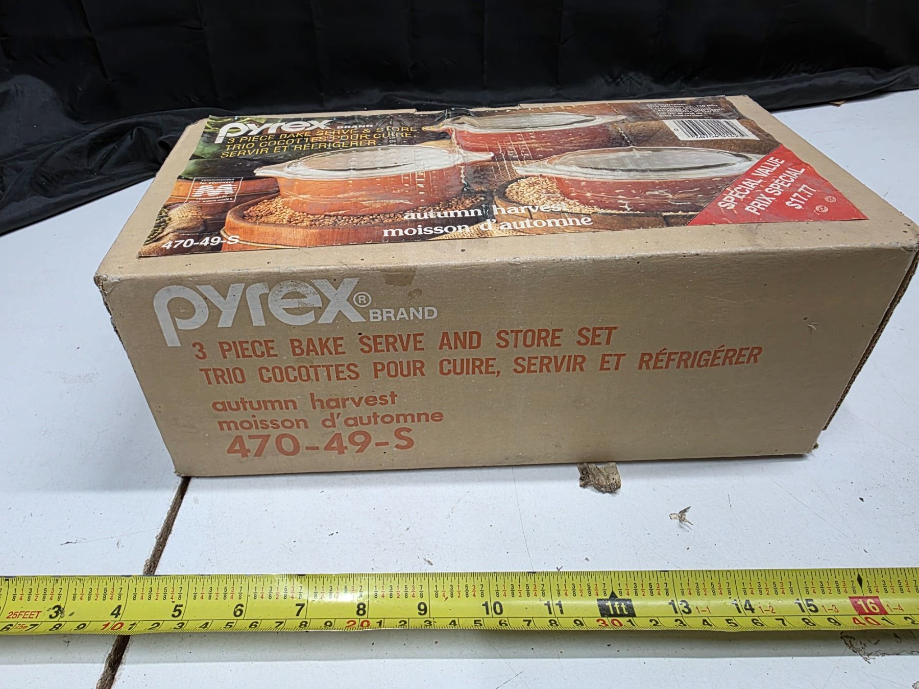 Pyrex autum harvest 3 piece bake and serve set # 470-49-S Sealed new in box
