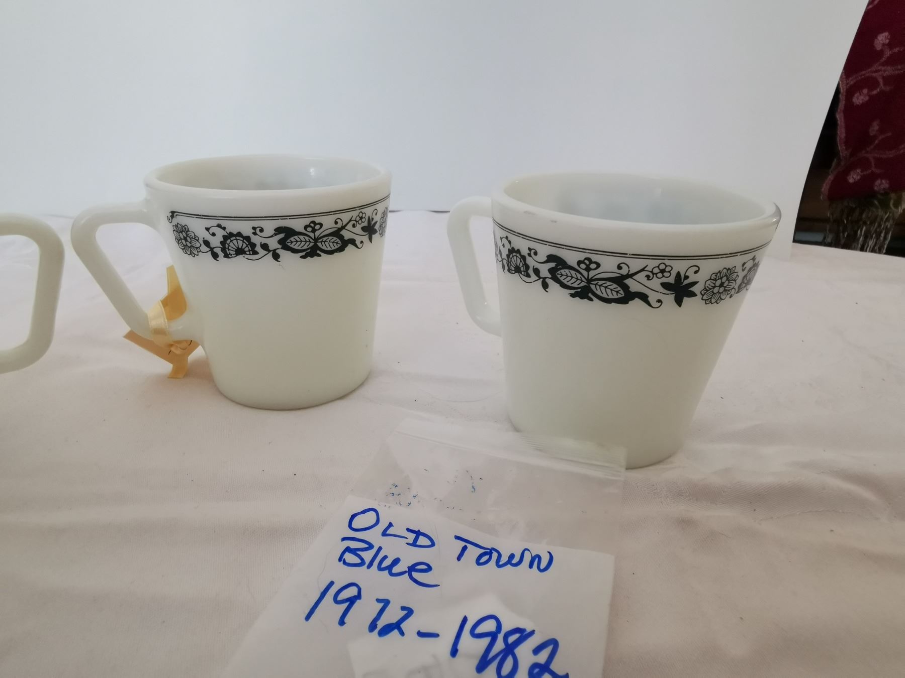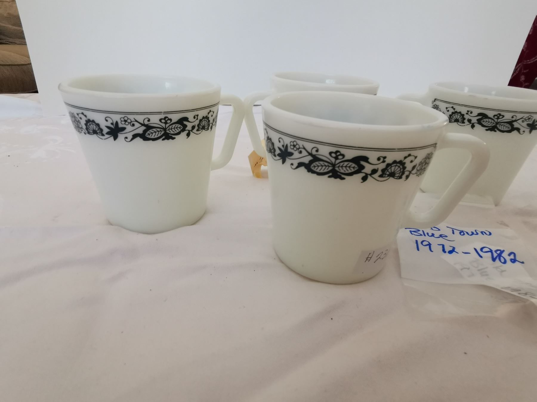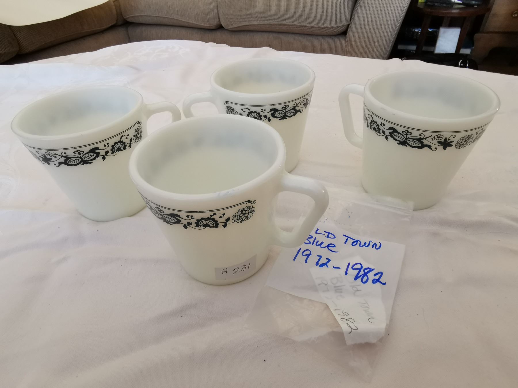 Pyrex mugs, “Old Town Blue” pattern, 1972-82 (4)