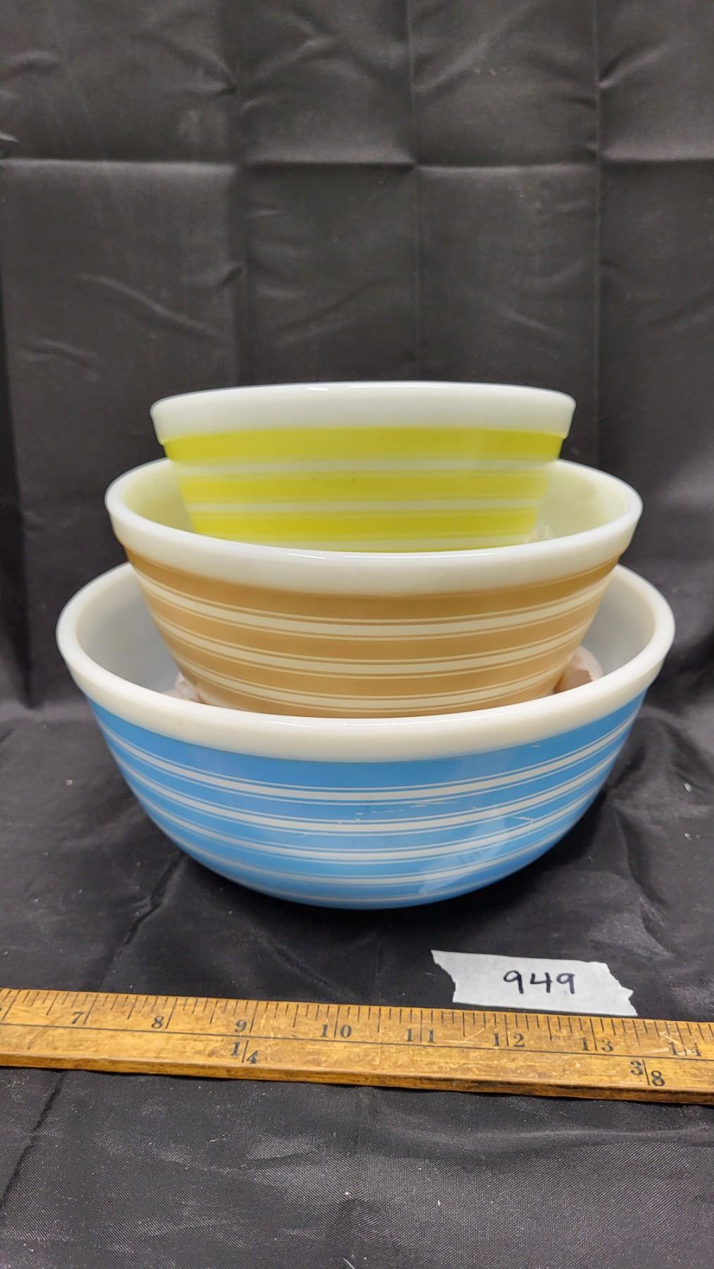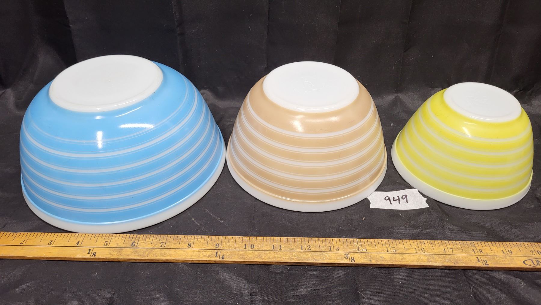 Pyrex stripes, mixing bowl set