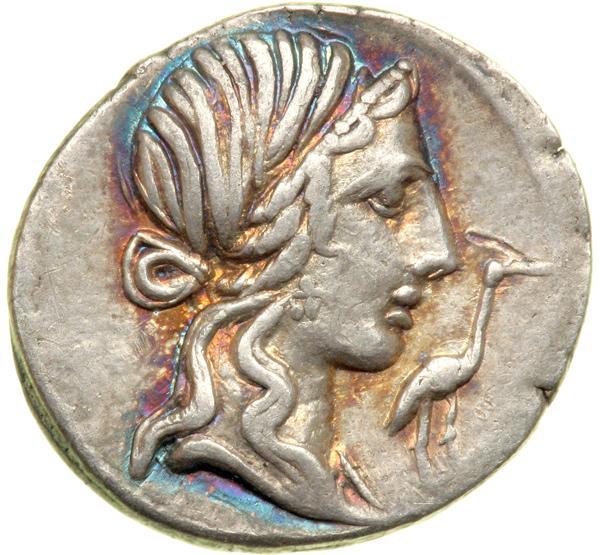 Q. Caecilius Metellus Pius (as Imperator). AR Denarius minted at Rome, c. 81 BC. Diademed head of Pietas right, stork before. Reverse: Lituus and jug with handle, IMPER in ex., all in laurel-wreath. Caecilia 43; Cr. 374/2; Syd. 751. Attractively toned