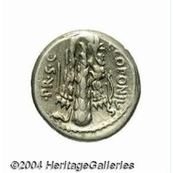 Q. Sicinius and C. Coponius. 49 B.C. AR denarius (17 mm, 4.06 g). Mobile military mint with Pompey in the East. Diademed head of Apollo right; star below / Club and lion's skin; arrow to left, bow to right. Crawford 444/1a; HCRI 3; Sydenham 939; Sicinia 1. Lightly toned, nice VF. Important notice: Heritage usually auctions material at the rate of 200-250 lots per hour. On some occasions eBay Live bid software or the Internet may not be able to keep up with the pace of the auction. We recommend placing a realistic absentee bid now as insurance to avoid disappointment. Occasionally the auctioneer may eliminate or reject an eBay Live bid, and the auctioneer may also reopen a lot after the close of the eBay live bidding (usually because we missed an audience bid), and may reject your bid even if it shows you as the winning bidder. By bidding via eBay Live, you agree that Heritage may award the lot to another bidder at its sole discretion under the circumstances described above or any other reasonable circumstances. Also please note that all Heritage lots purchased through eBay Live carry a 20% Buyer's Premium. Please make sure you read the Terms and Conditions before you bid.
