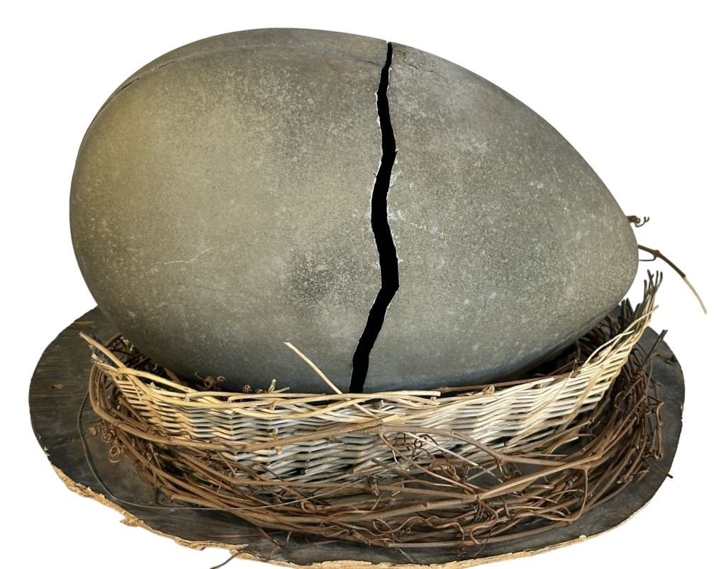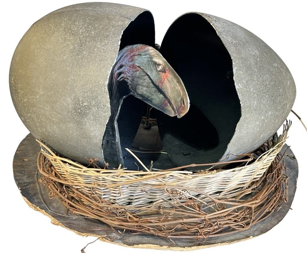 Original special effects stop-motion egg used in the Larry Cohen directed monster horror film 'Q: The Winged Serpent' (1982), which follows a petty swindler (Moriarty) who accidentally intrudes in a case involving a winged deity monster that poses a threat to New York City. He is the only person who has information that can help the police to stop the creature.