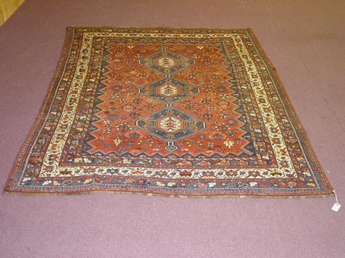 QASHGAI SHIRAZ PERSIAN CARPET (6 FT. 10" X 10 FT. 1")- WEAR & IMPERFECTIONS