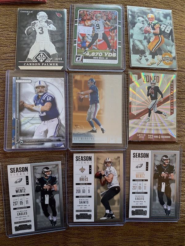 QB Lot: Farve manning 2nd yr card Brees Wentz Luck Carr Palmer numbered to 99