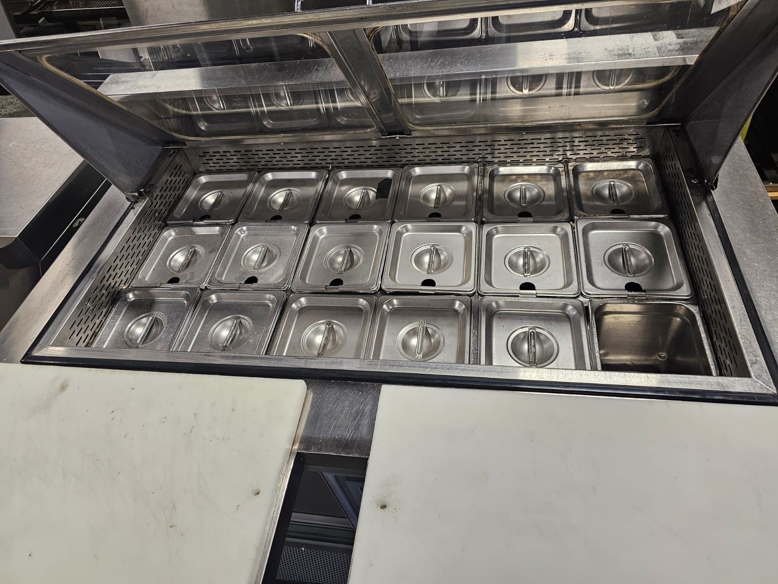 W/ UNDERMOUNT SLIDING DOORS & 18- S/S 1/6 SIZE INSERTS. MODEL: ESU 48. 120V, SINGLE PHASE, 10A. 48" X 38" X 36"