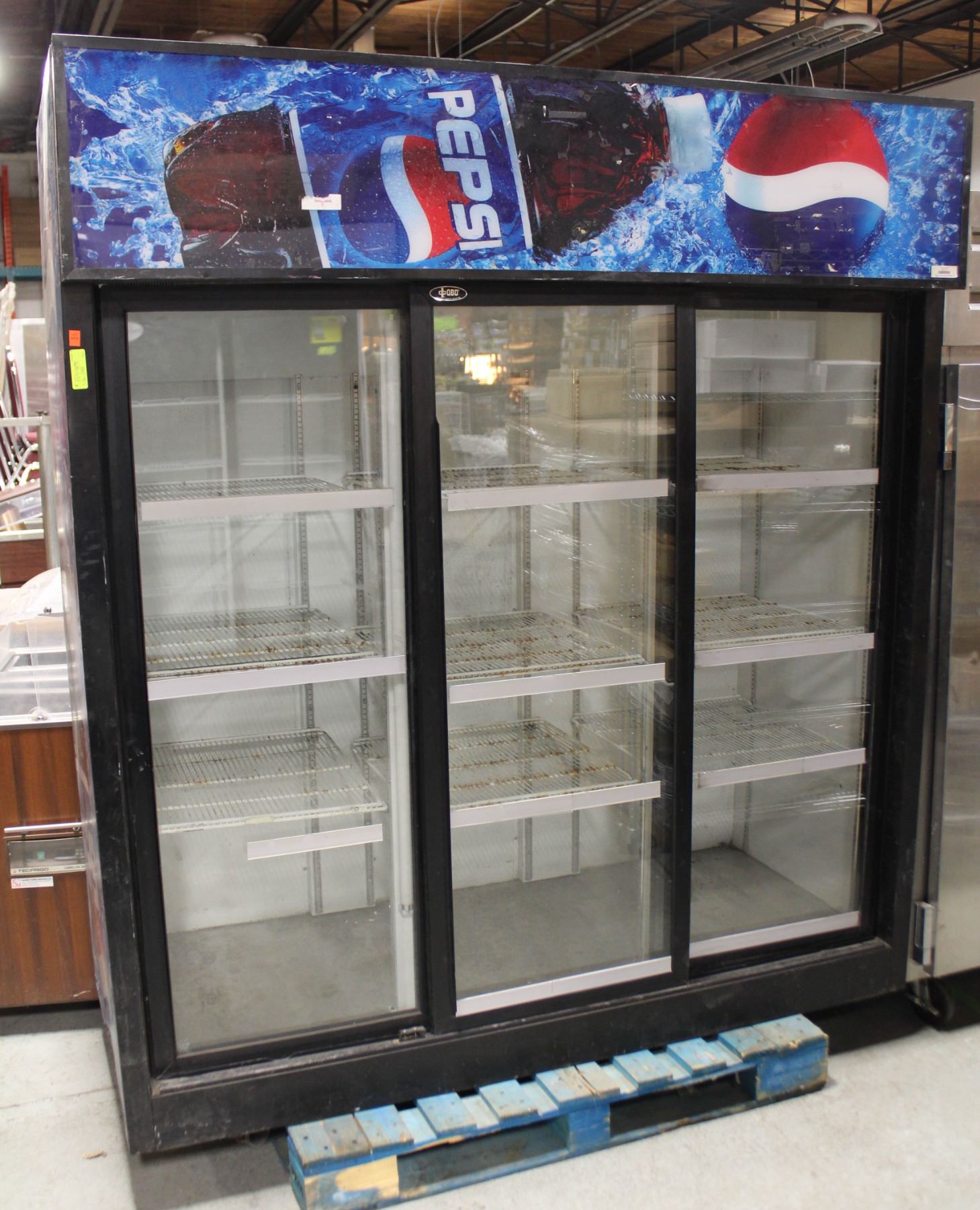 QBD TRIPLE GLASS DOOR COMMERCIAL DISPLAY COOLER * AS IS, NOT CIRCULATING AIR