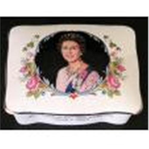 Produced by Crown Staffordshire, this fine bone china dresser box commemorates the 1977 Silver Jubilee of Queen Elizabeth II of England.