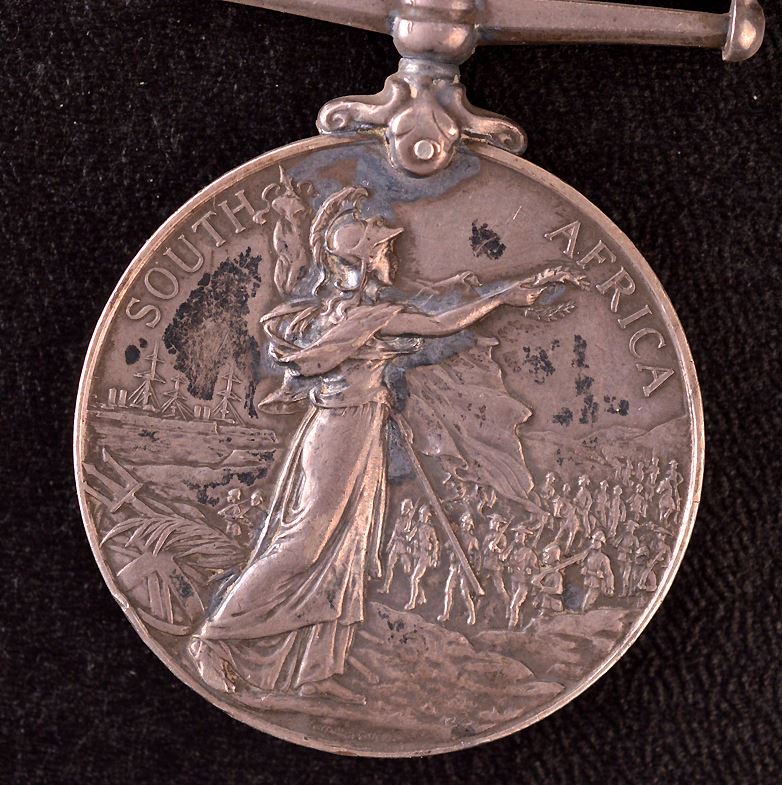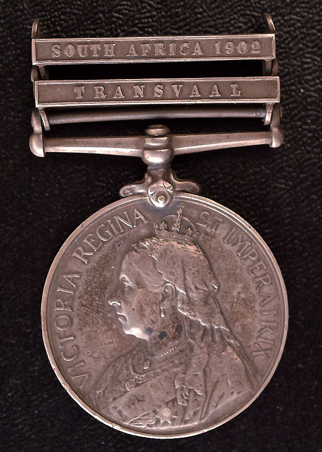 Queen's South Africa Medal, 2 Bars, Transvaal, South Africa 1902, engraved to "5626 Pte C. REEKS. YORKSHIRE L.I.", About VF, small digs, edge nicks. Possible small repair to hanger. Missing ribbon.