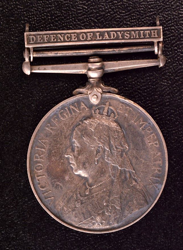 Queen's South Africa Medal, Bar, Defense of Ladysmith, engraved to "5076 Sgt S. J. McDONNELL, LIVERPOOL REGt", VF, a few small edge bumps, scratches reverse. Missing ribbon.