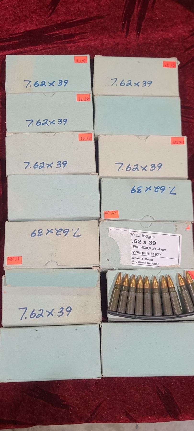 QTY 280 ROUNDS (14 BOXES OF 25) 7,62 X 39MM 124GR. BALL ARMY SURPLUS 1977 SELLIER AND BELLOT CZECH REP MADE