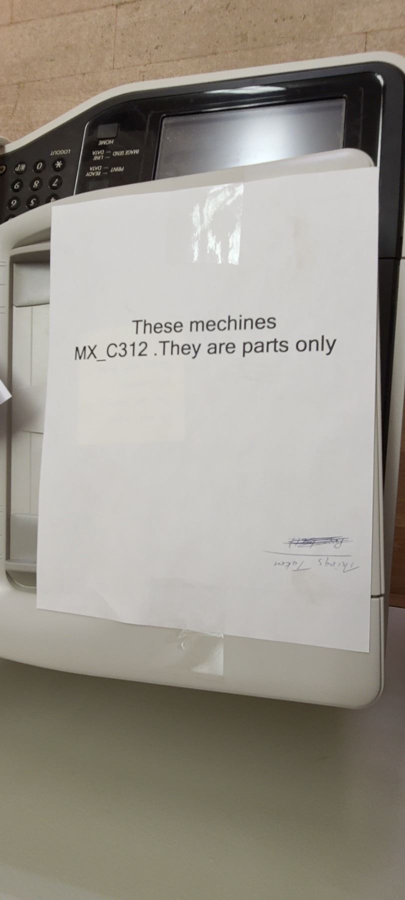 QTY OF 3 SHARPS MX-C312 PARTS MISSING. SAS PARTS PRINTERS ONLY