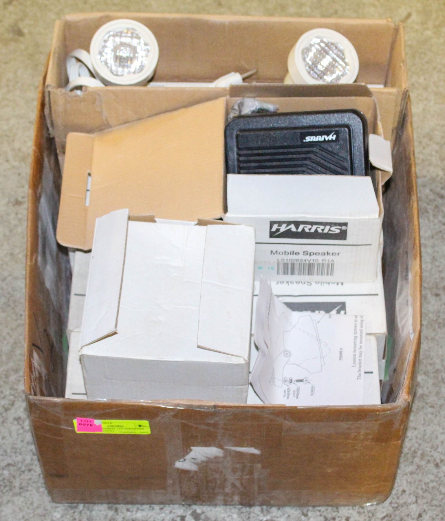 UNUSED AUXILIARY SPEAKERS FOR TWO WAY RADIOS OR ALARMS. EMERGENCY EXIT LIGHT UNUSED