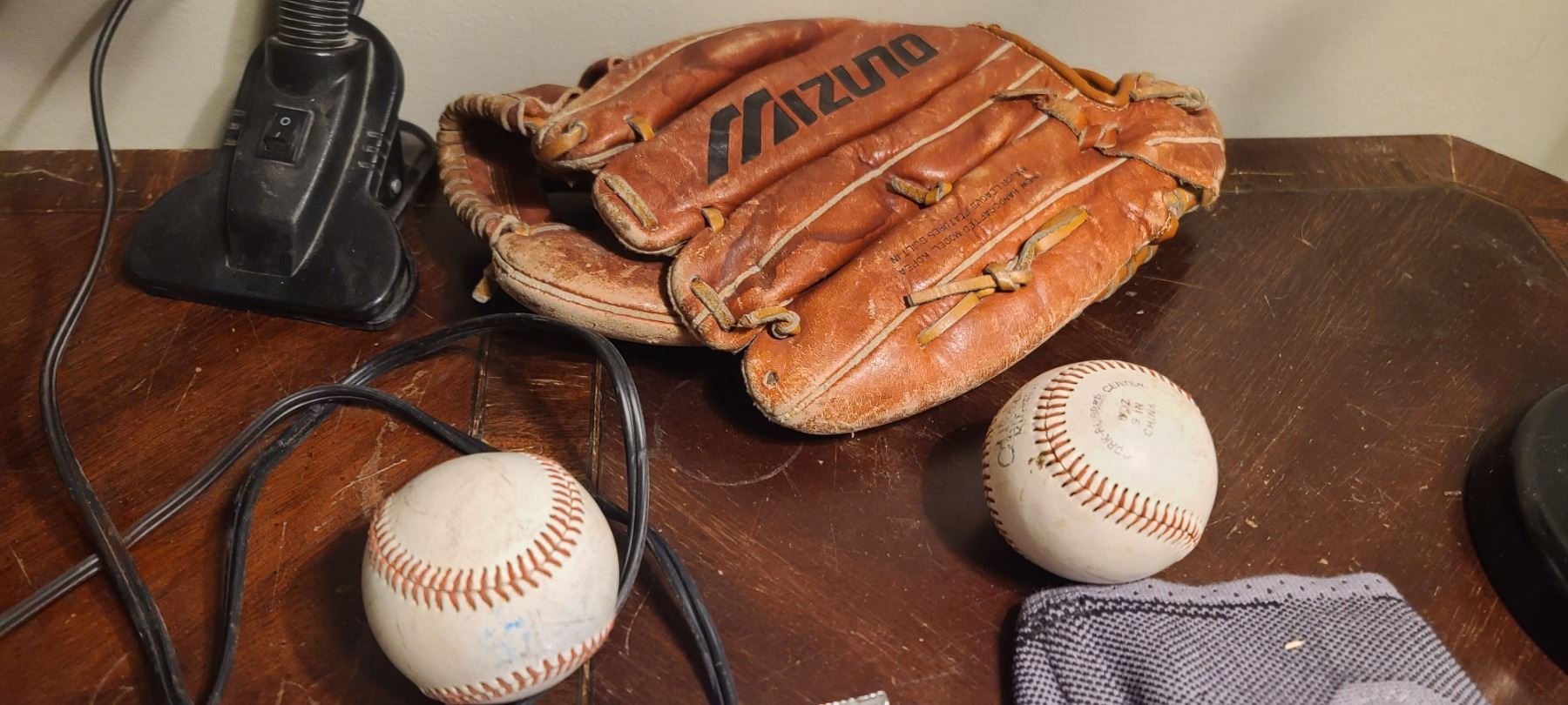QTY OF MISC BASEBALLS AND MIT, LAMP