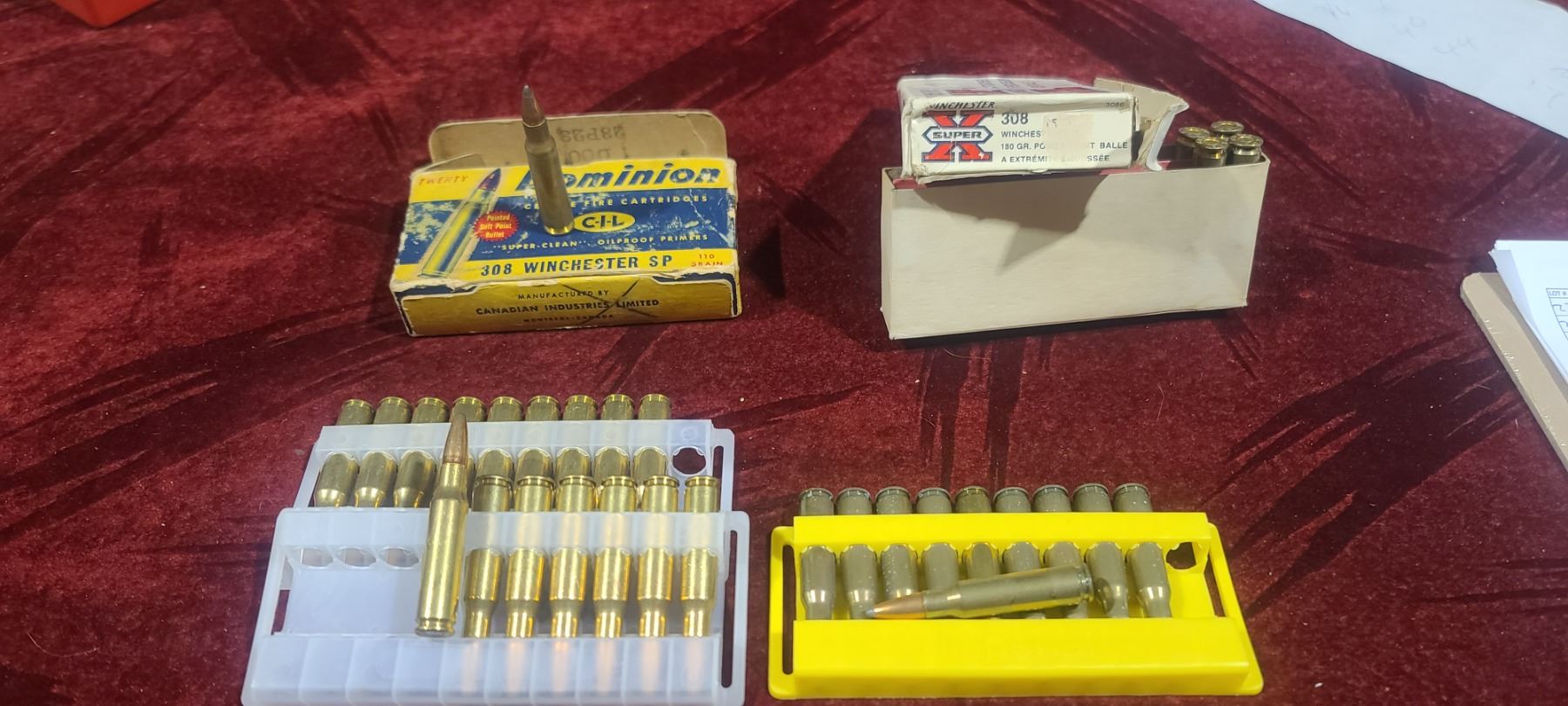 QTY44 ROUNDS OF .308: QTY14 DOMINICAN 110GR - QTY4 180GR PP - QTY16 FC AND QTY10 IMPERIAL - GRAIN AND BULLET UNKNOWN