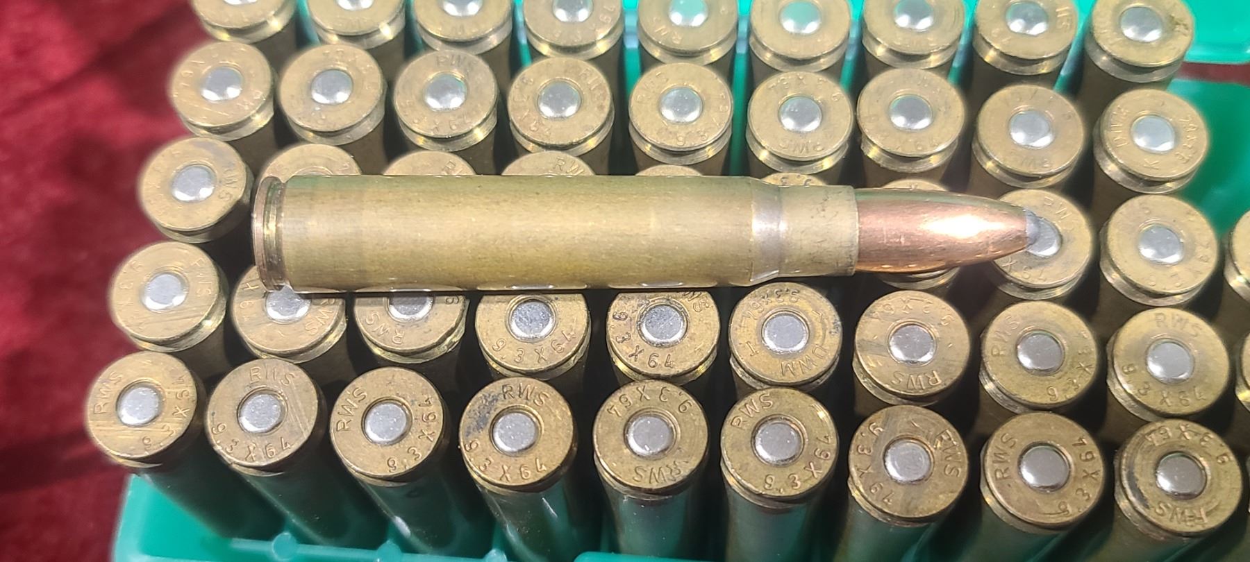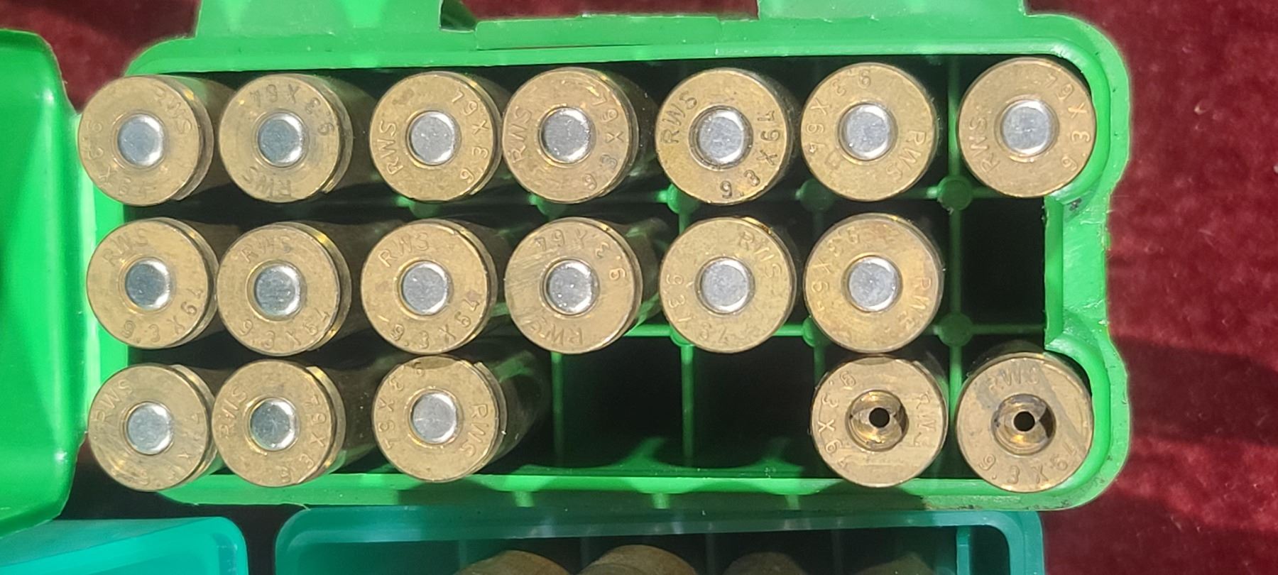 QTY49 ROUNDS OF 9.3X64 - GRAIN UNKOWN -PLUS 16 PRIMED SHELLS AND TWO UNPRIMED