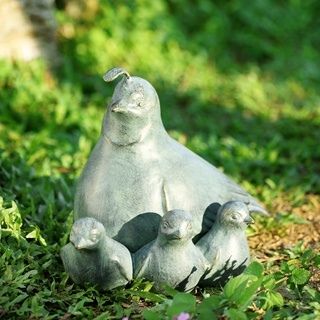 QUAIL & BABIES GARDEN SCULPTURE - 9"H 11"W 8.5"D - ALUMINUM