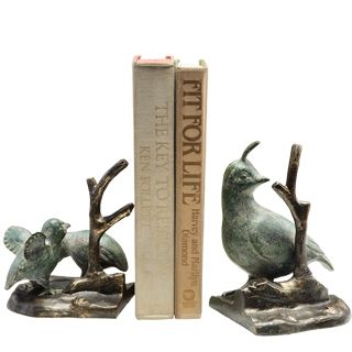 QUAIL FAMILY BOOKENDS - VERDI & BRONZE FINISH - 6.5"H 5"W 5"D - ALUMINUM