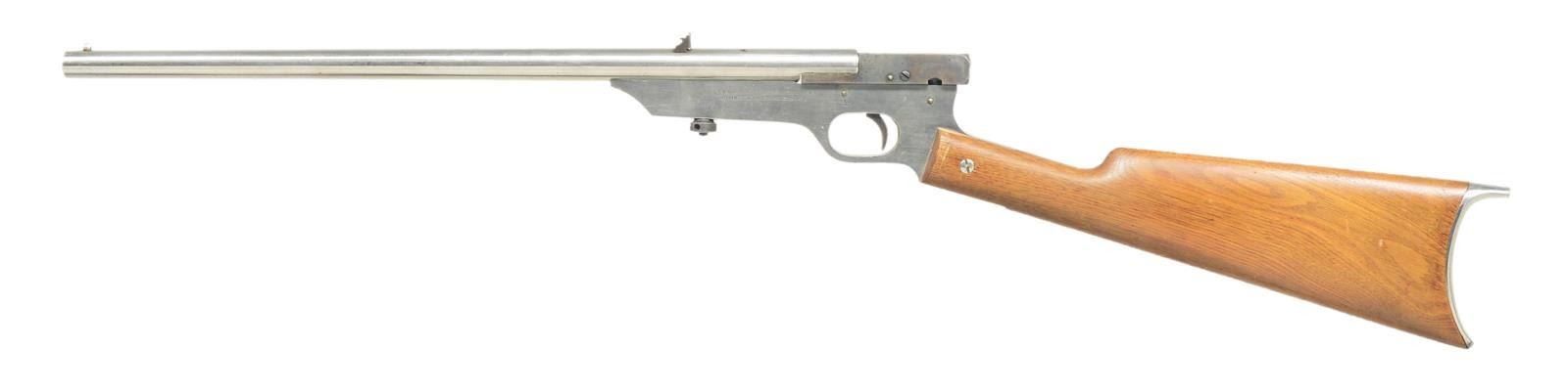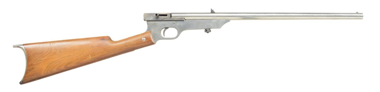 Cal. 22 RF (22 S, L). NSN. Bbl. 18" w/ fixed sights. Nickel finish w/ case colored side swiveling breech block. Walnut stock w/ crescent buttplate. CONDITION: very good nickel finish w/ pinprick oxidation throughout & spots of pitting. Lightly visible case colors w/ pinprick oxidation. Good stock finish w/ handling marks. Good bore w/ strong lands. (22-2715/MD). CURIO. $350-500.