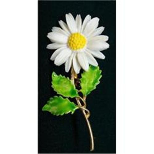 BEAUTIFUL DETAILED BROOCH, IT DEPICTS LOVELY WHITE DAISY FLOWER WITH GREEN ENAMEL LEAVES - as per pictures,EXCELLENT - MINT CONDITION - BROOCH MEASURES ABOUT 2 1/2" long, US BUYER TO PAY 7.00 FOR SHIPPING PLUS INSURANCE,THANKS.